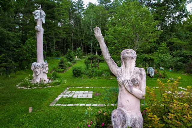 Emile Brunel immigrated to the United States from France in 1904, and after chasing adventure in the West, he created a sculpture garden in the Town of Olive, NY as an ode to his appreciation for the culture of numerous Native American tribes he encountered there. Dedicated to “the mysteries and grandeur of nature,” Brunel’s sculpture garden was a notable roadside attraction in Upstate New York beginning in the 1920s–a period of growing American leisure–until the late 1950s.