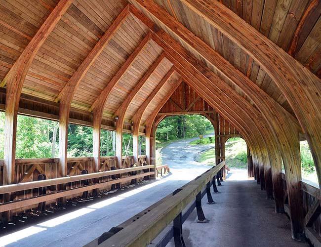The Pine Hill Covered Bridge serves as the entrance to the Belleayre Mountain Day Use Area. It is east of Pine Hills in the Town of Shandaken. The bridge was built in 1992 and has a 72 foot long single-span.
